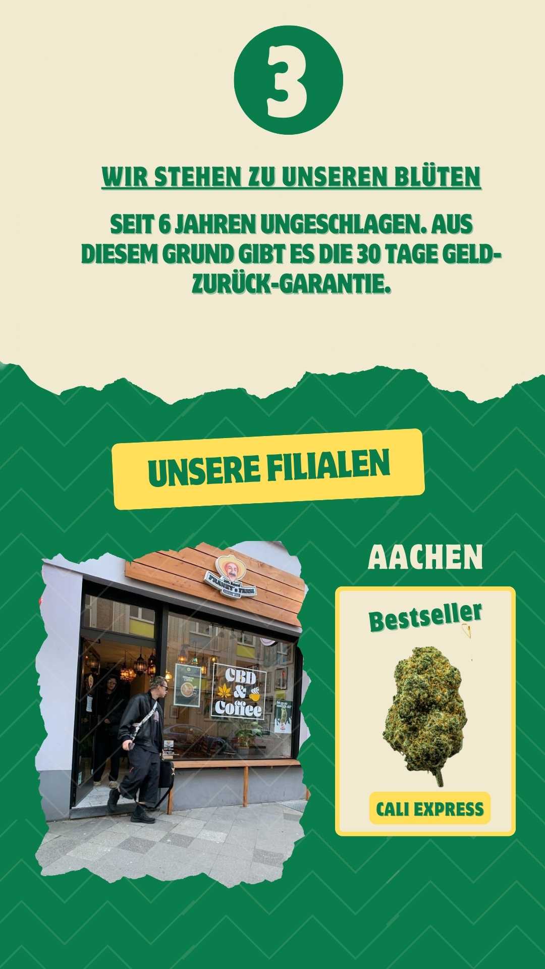 Traurig ist jedoch, dass wir bei unseren Überprüfungen einige CBD-Marken entdeckt haben, die ihre Produkte in Kiosken (Spätis) platziert haben, die genau dieses Qualitätsmerkmal haben. Meist noch mal nachbearbeitet,