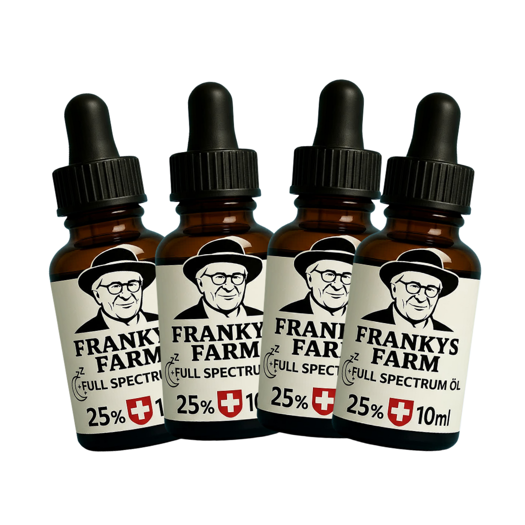 Erkennst du dich wieder? 3 Uhr morgens. Wieder wach. Kopf rattert. Tagsüber? Ständig unter Strom. Gereizt. Am Limit. Beim Arzt? "148/94 – wir müssen über Medikamente reden." Franky's Öl ist kein Wunder. Aber es ist das Nächstbeste. Die tiefe Ruhe, die dein Körper vergessen hat. Der Schlaf, der endlich durchgeht. Der Blutdruck, der runterkommt. Ohne Tabletten. Ohne Nebenwirkungen. Nur Natur.